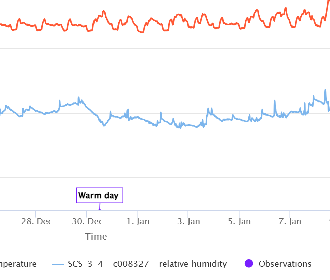 The Observations feature in Conserv Cloud allows you to annotate environmental data as events occur in your collection spaces. By documenting events in real time, you create a permanent record that helps you and your team understand environmental patterns and respond to future questions about your collection environment.