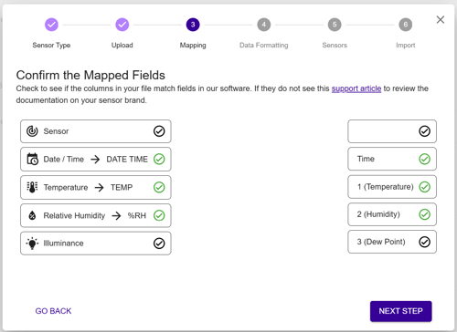 - You may need to refresh the Sensors page to see the newly imported data.