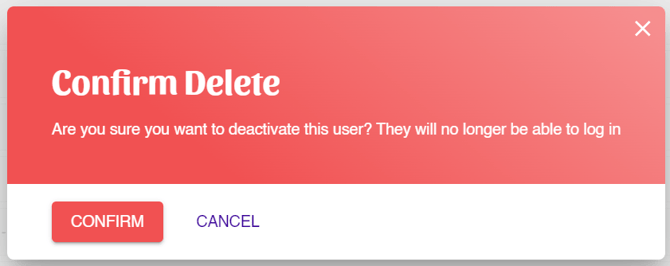 - Click CONFIRM in the dialog. The deactivated member will no longer have access to your account.