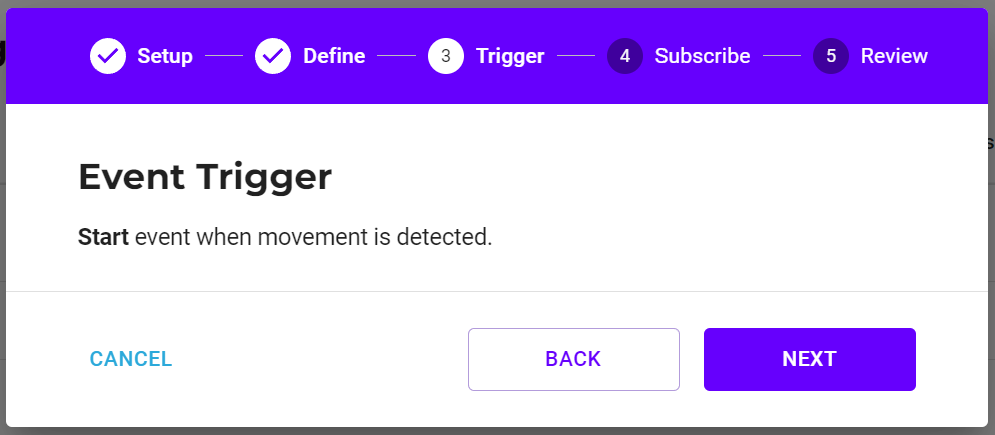 7. For movement events, the Event Trigger is preset for you. Click NEXT.